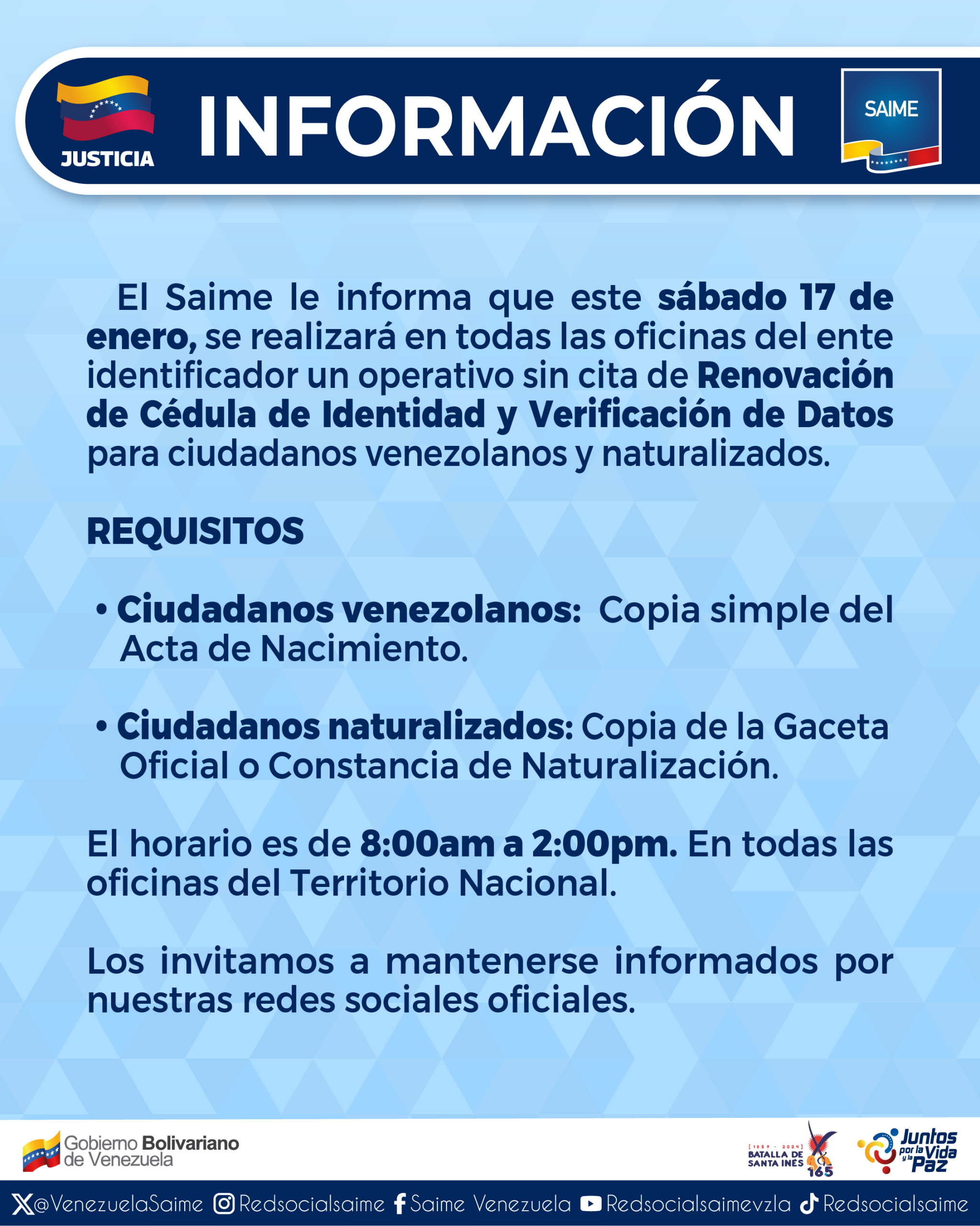 Este 5 de enero de 2026, el Servicio Administrativo de Identificación, Migración y Extranjería (Saime), se sumó a la movilización realizada en Caracas con motivo de la instalación del nuevo período legislativo de la Asamblea Nacional, acompañando el inicio de las actividades parlamentarias y reafirmando su respaldo a los procesos institucionales del país.